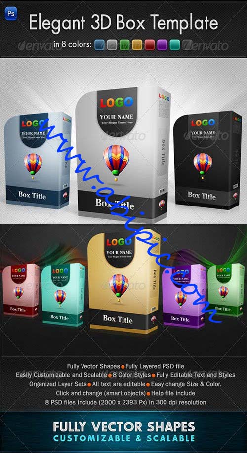 دانلود طرح لایه باز ساخت جعبه های 3 بعدی بسته بندی Elegant 3D Box