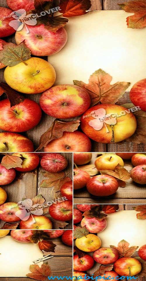 دانلود تصاویر پس زمینه پاییر با طرح سیب سرخ و چوب Autumn background with red apples