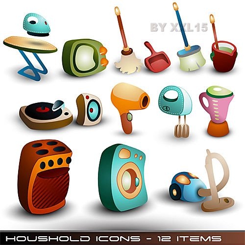 دانلود وکتور آیکون های زیبای وسایل منزل Cute household icons