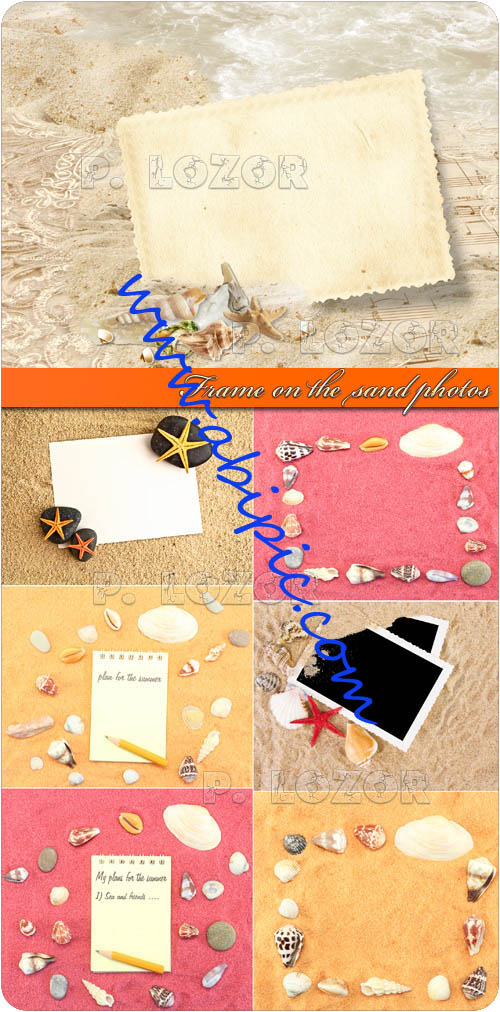 دانلود کادر و فریم عکس در یک زمینه ماسه ساحلی Frame on the sand photos
